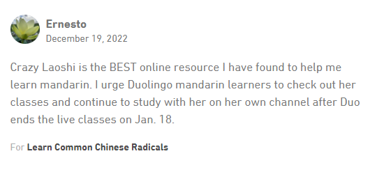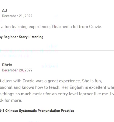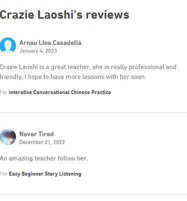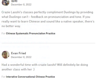 What do you think about Crazie Laoshi's Mandarin Chinese class?